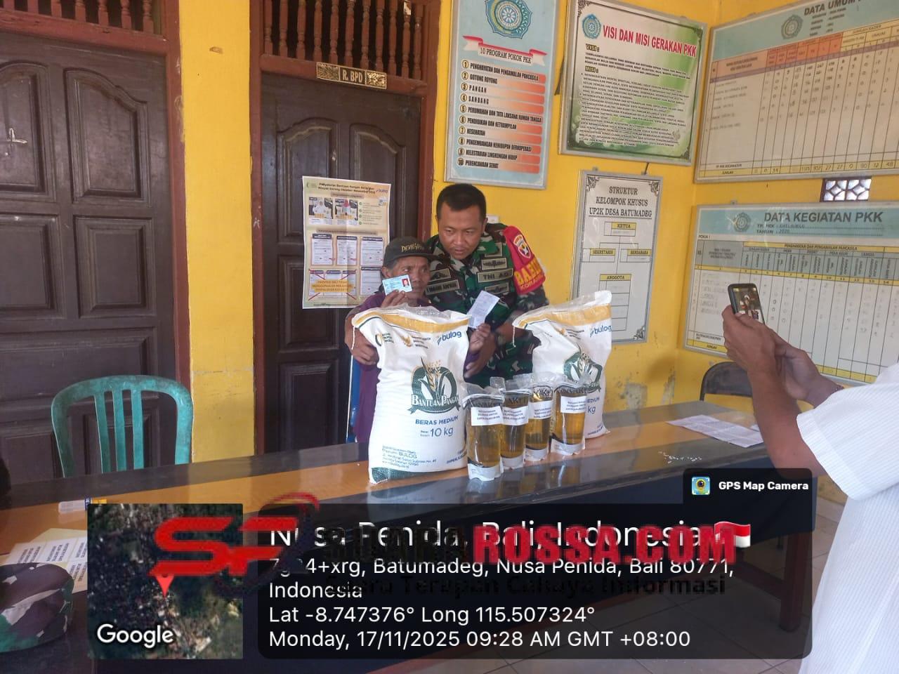 Klungkung,- Pendistribusian bantuan pangan beras dan minyak goreng program Penerima Bantuan Pangan ( PBP ) bulan Oktober dan Nopember 2025 digelar Pemerintah Desa Batumadeg, Kecamatan Nusa Penida, Kabupaten Klungkung digelar pagi ini Senin ( 17/11/25 ).