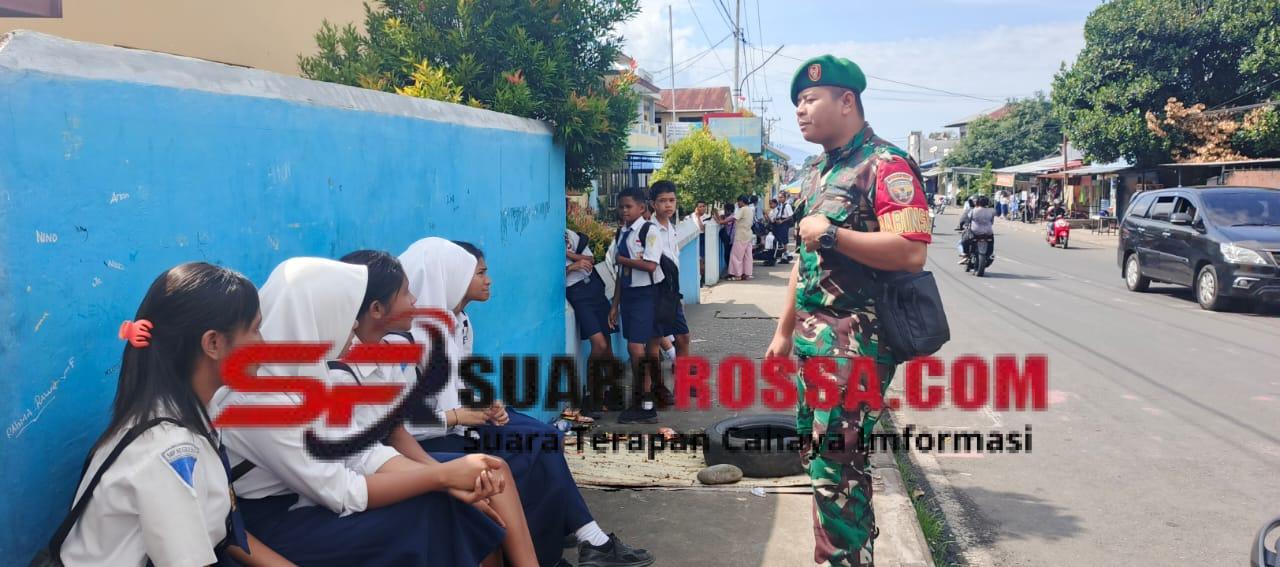 Ende — Babinsa Praka Taruna Diharjaya DE dari Koramil 1602-01/Ende melaksanakan kegiatan Komunikasi Sosial (Komsos) bersama pelajar SMPN 1 Ende di Jalan Kelimutu, Kelurahan Onekore, Kecamatan Ende Tengah, Kabupaten Ende, pada Senin, 17 November 2025, pukul 09.30 Wita.