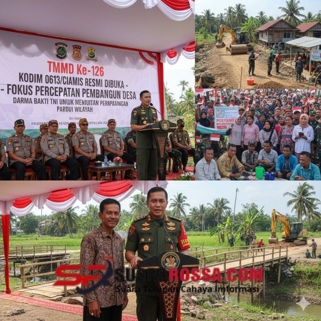 Ciamis – Kodim 0613/Ciamis resmi membuka pelaksanaan TMMD ke-126 tahun 2025 di Desa Kersamanah, Kecamatan Lakbok, Ciamis, Senin (17/11/2025). Kegiatan tersebut dibuka langsung oleh Dandim 0613/Ciamis Letkol Inf Asep Kelanajaya dan turut dihadiri para pejabat Forkopimda Kabupaten Ciamis.