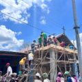 Haumeniana – Prajurit Satgas Pamtas RI-RDTL Sektor Barat Yonarhanud 2 Kostrad Pos Haumeniana mengadakan gotong royong pengecoran atap Gere...