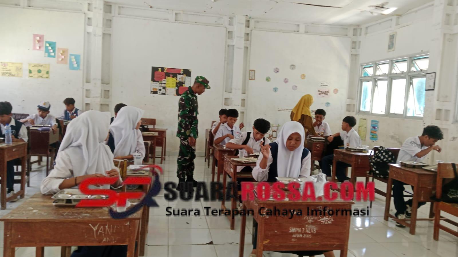 Sumbawa, NTB – Anggota Koramil 1607-04/Alas, Serda Andriano, melaksanakan kegiatan pengawasan dan pendampingan penyaluran Makanan Bergizi Gratis (MBG) di wilayah Desa Labu Alas, Kecamatan Alas, pada Selasa (18/11/2025). Kegiatan ini merupakan bagian dari upaya memastikan program pemerintah berjalan tepat sasaran serta diterima oleh para pelajar dan santri yang berhak.