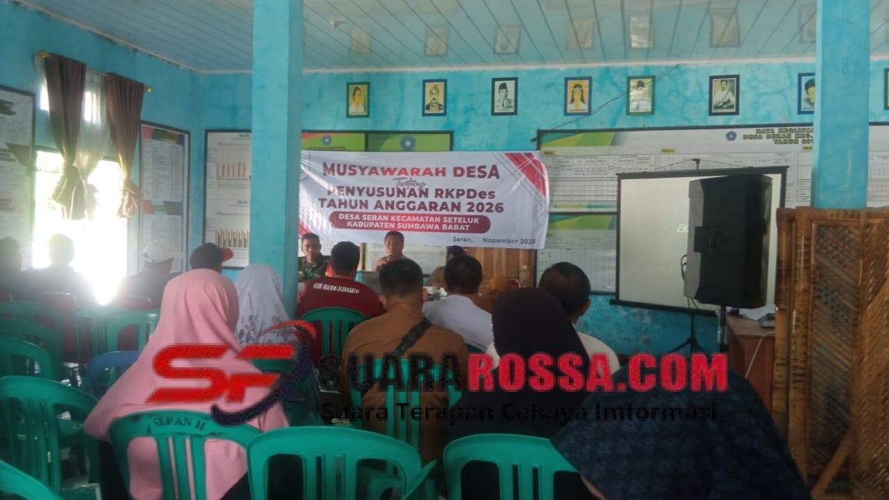 Sumbawa Barat — Pada hari Selasa, 18 November 2025, pukul 09.10 WITA, Babinsa Koramil 1628-03/Seteluk Koptu Agus Sugeng Prayitno menghadiri dan mendampingi kegiatan sosialisasi pembahasan Anggaran Pendapatan dan Belanja Desa (APBDes) Tahun 2025 serta penyusunan Rencana Kerja Pemerintah (RKP) Desa Tahun 2026 yang bertempat di Desa Seran, Kecamatan Seteluk, Kabupaten Sumbawa Barat.