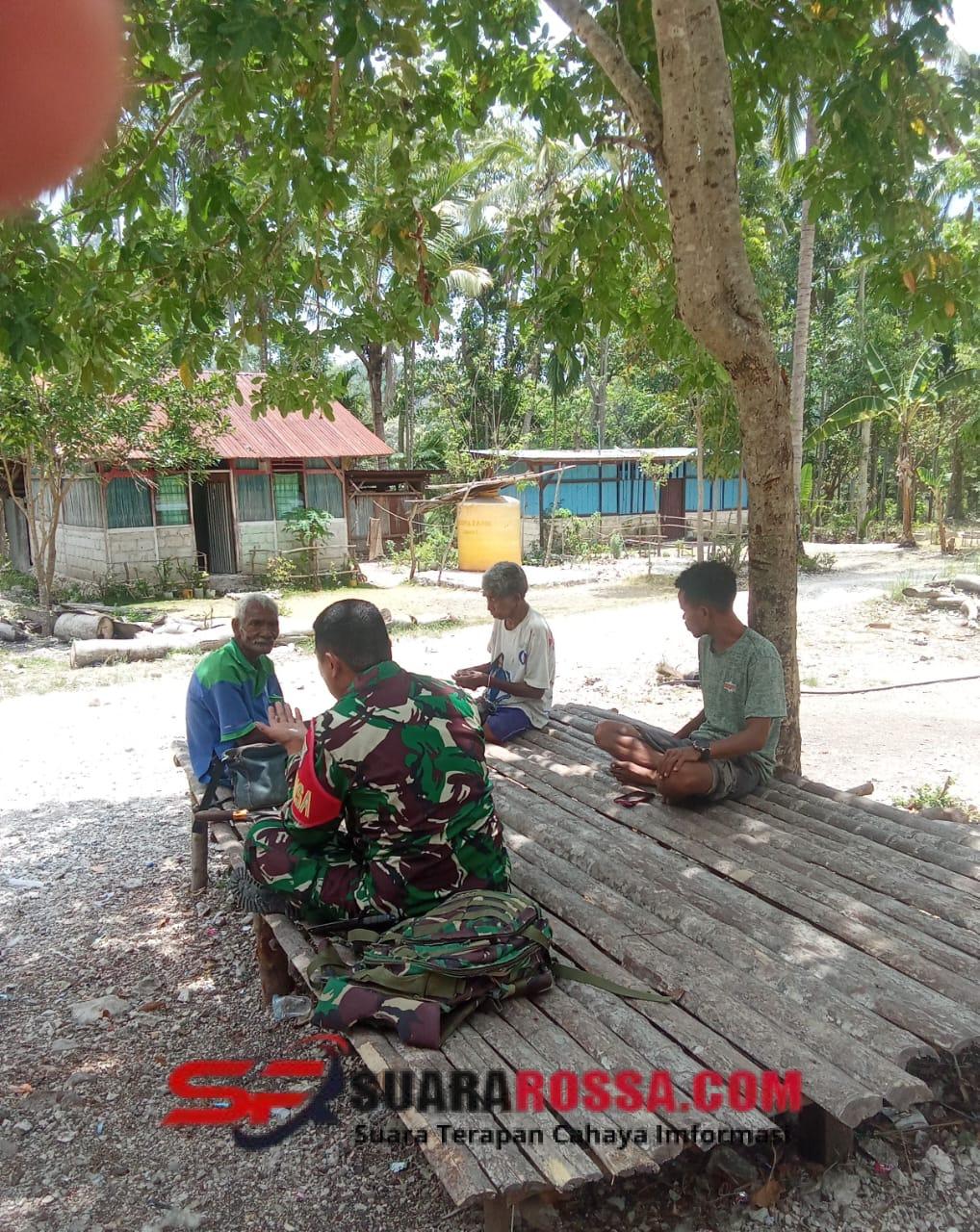 TTS – Babinsa Koramil 1621-05/Panite, Kopda Adrianus Benu, terus aktif melaksanakan patroli serta monitoring wilayah sekaligus melakukan pembinaan Komunikasi Sosial (Komsos) bersama warga di desa binaannya.
