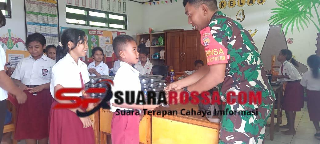 Rote Ndao — Pada hari Rabu, 19 November 2025 pukul 07.00 Wita, Babinsa Koramil 1627-01/Ba’a Kopda Habib Ahmad melaksanakan pemantauan dan pendampingan Program Makan Bergizi Gratis (MBG) yang diselenggarakan di Kompleks Perkantoran Ti’i Langga Permai, Jln Lekunik, Kelurahan Mokdale, Kecamatan Lobalain, Kabupaten Rote Ndao. Program ini dilaksanakan oleh Satuan Pelayanan MBG secara bertahap di 16 sekolah dan 1 posyandu, sebagai upaya pemerintah meningkatkan kualitas gizi anak sekolah dan ibu menyusui.