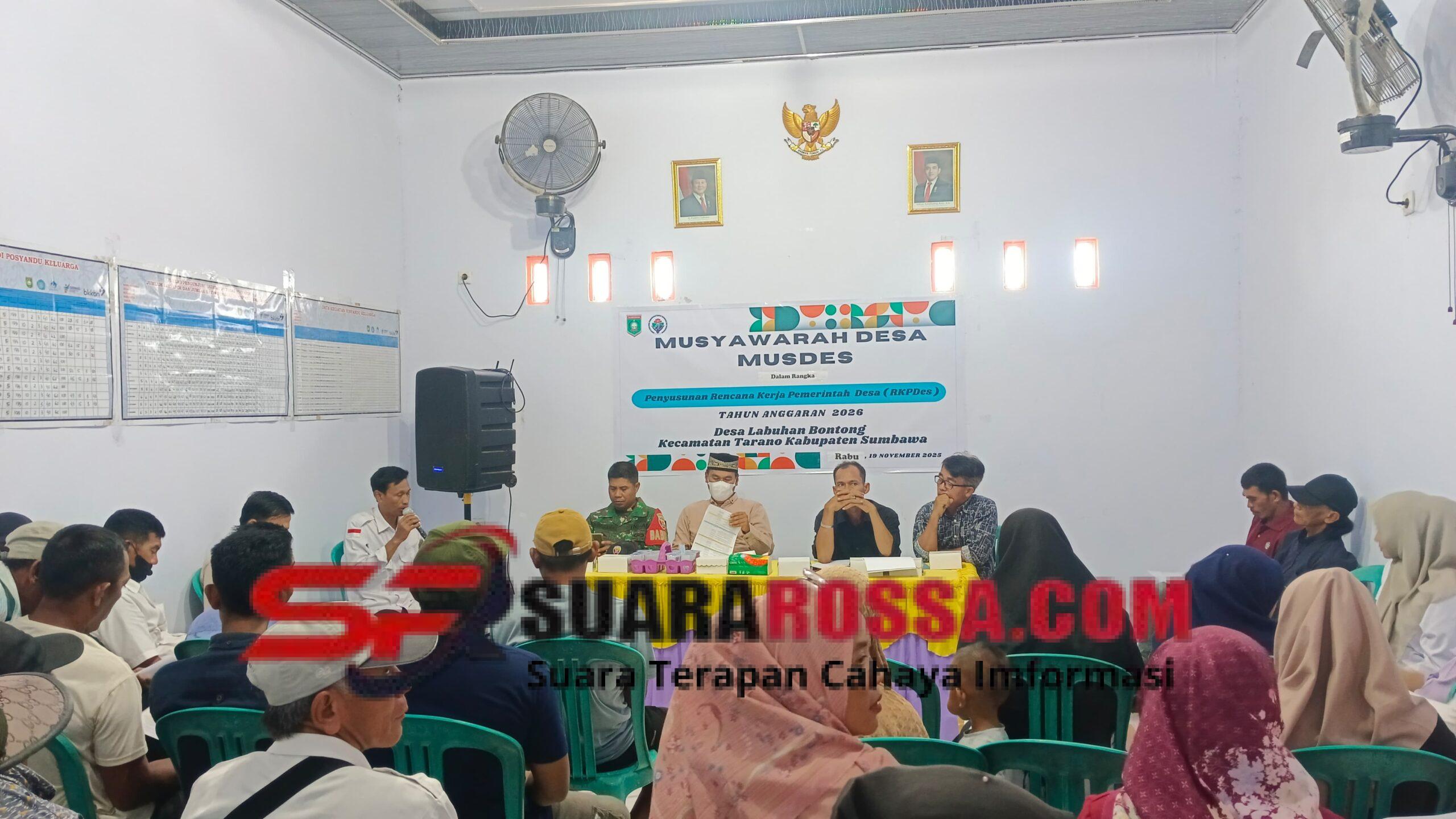 Sumbawa, NTB — Babinsa Desa Labuhan Bontong, Sertu Arifudin, anggota Koramil 1607-02/Empang, turut serta dalam kegiatan Musyawarah Desa (Musdes) dalam rangka penyusunan Rencana Kerja Pemerintah Desa (RKPDes) Tahun Anggaran 2026. Kegiatan ini berlangsung di Aula Kantor Desa Labuhan Bontong, Kecamatan Tarano, Kabupaten Sumbawa. Pada rabu (19/11/2025).