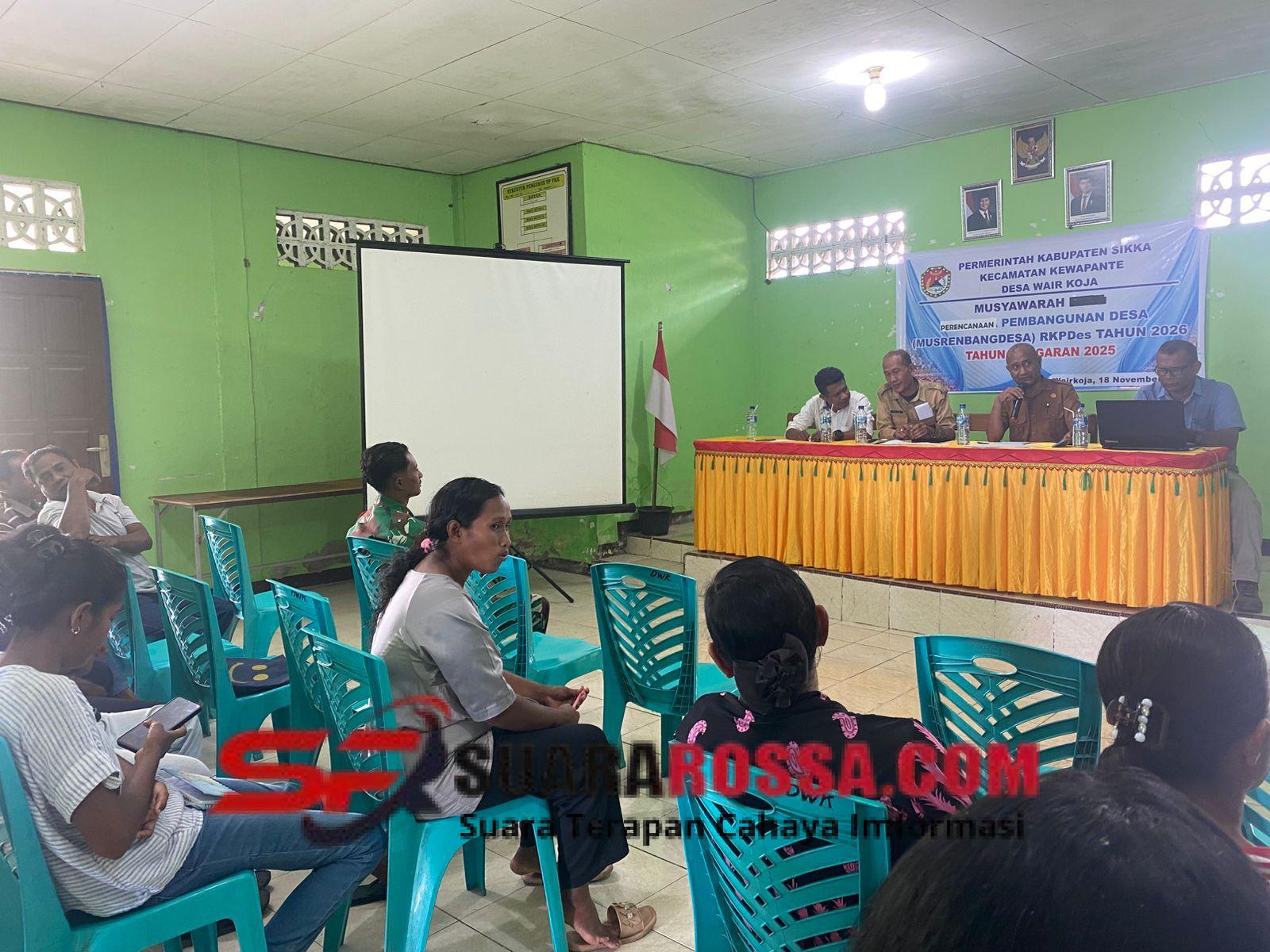 NTT – SIKKA. Babinsa Koramil 1603-04/Kewapante Kodim 1603/Sikka, Pratu Weri Yermia Toto, menghadiri kegiatan Musyawarah Desa (Musdes) Perencanaan Penyusunan RKPDes Tahun Anggaran 2026 yang berlangsung di Aula Kantor Desa Wairkoja, Kecamatan Kewapante, pada kamis (20/11/2025).