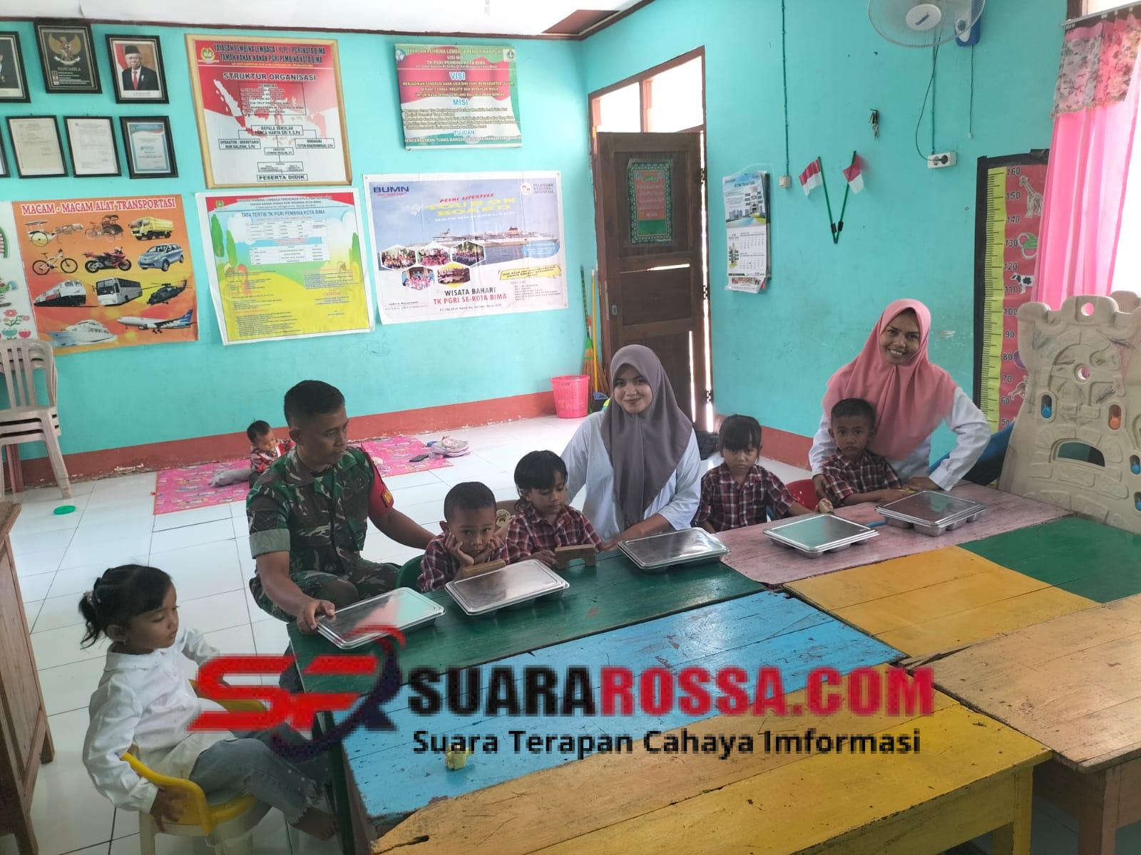 Kota Bima _ Pada Kamis, 20 November 2025, Serka Iksan Babinsa Kelurahan Monggonao dari Koramil 1608-01/Rasanae ikut mendampingi kegiatan pembagian Makan Bergizi Gratis (MBG) di wilayah Kelurahan Monggonao, Kecamatan Mpunda, Kota Bima. Kegiatan yang diselenggarakan oleh SPPG ini membagikan 2.634 paket makan bergizi kepada siswa dari berbagai jenjang sekolah.