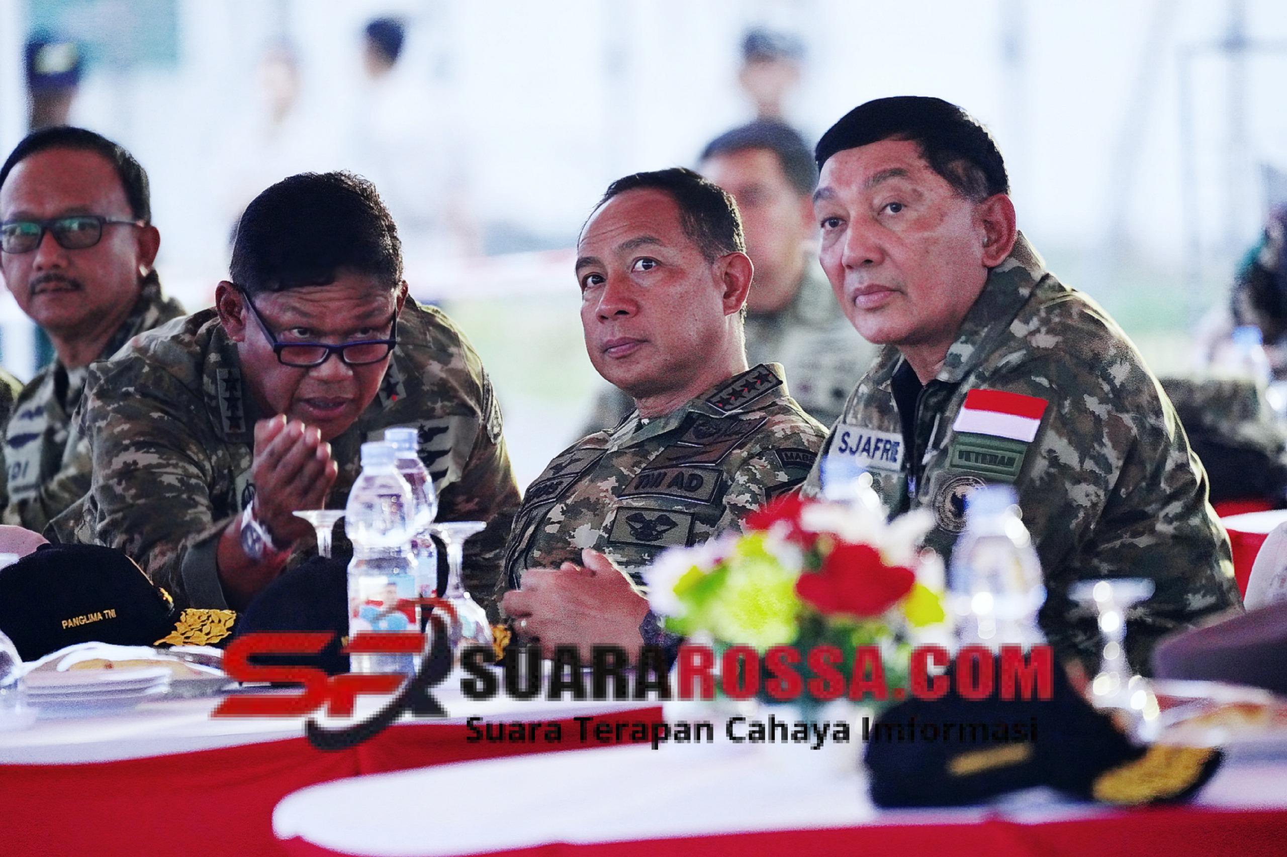 (Puspen TNI). Panglima TNI Jenderal TNI Agus Subiyanto mendampingi Menteri Pertahanan RI Sjafrie Sjamsoeddin bersama Jaksa Agung ST Burhanuddin, Kepala BPKP Muhammad Yusuf beserta pejabat terkait, menyaksikan secara langsung pelaksanaan Latihan Komando Gabungan (Kogab) TNI yang terintegrasi Tahun 2025 di kawasan Bandara PT IMIP, Morowali, Sulawesi Tengah, Kamis (20/11/2025).