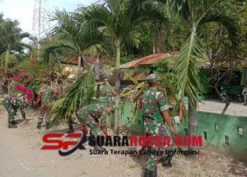 KODIM 1605/BELU, Dalam upaya menjaga kebersihan dan kenyamanan lingkungan sekitar Makoramil, Personi...
