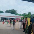 Rote Ndao – Personel Piket Koramil 1627-02/Pantai Baru, Kopda Grani Fia, melaksanakan kegiatan pemantauan bongkar muat penumpang, kendaraan, d...