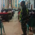 Rote Ndao — Personel Babinsa Koramil 1627-01/Ba’a melaksanakan pengamanan ibadat malam tutup tahun di Gereja Santo Kristoforus Ba’a, Kecam...