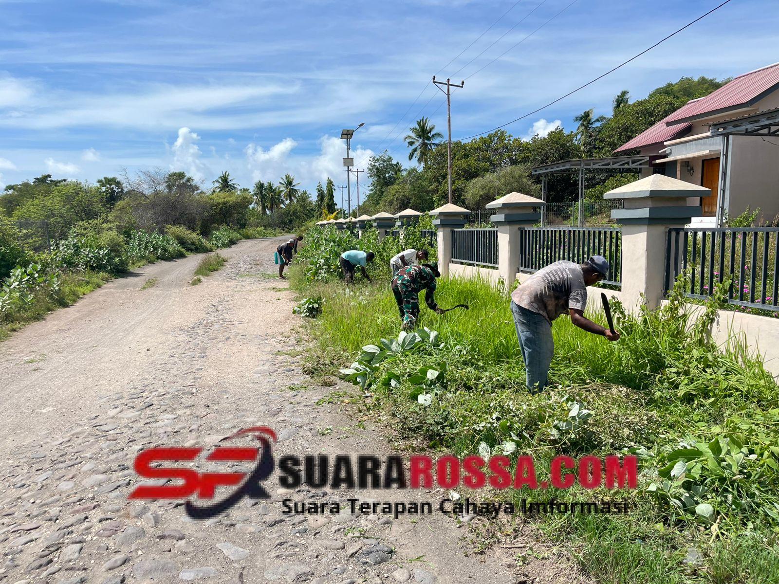 Lembata, – Babinsa Koramil 1624-07/Nagawutung, Praka Marshal Yudha Prasetya, bersama masyarakat Desa Wulandoni melaksanakan kegiatan kerja bakti pembersihan lingkungan pada Jumat, 21 November 2025.
