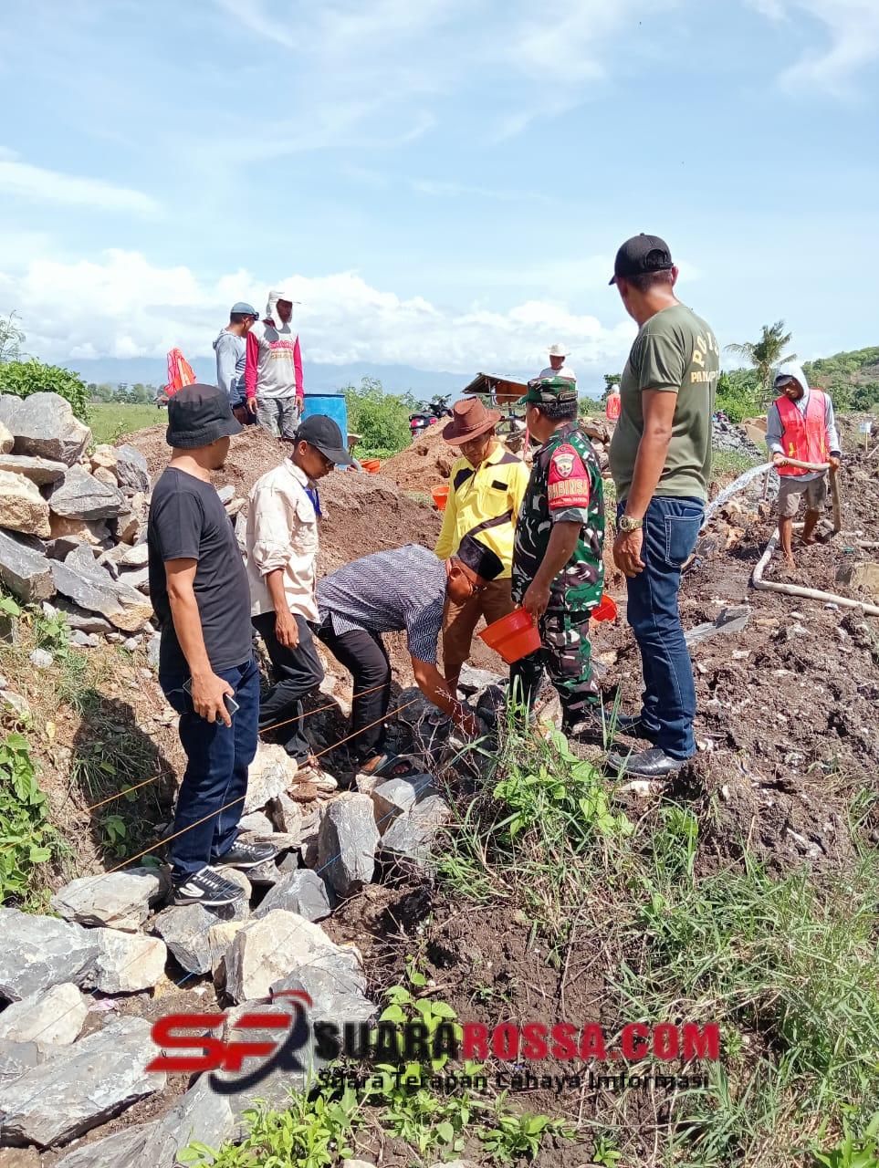 • Babinsa Koramil Woha Bersama Warga Sukseskan Pembangunan Infrastruktur Irigasi di Desa Naru