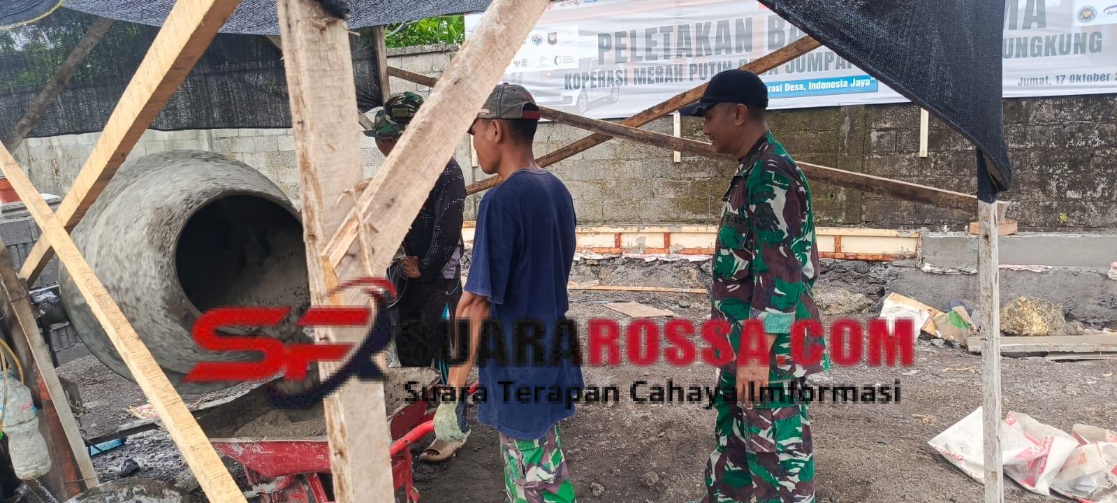 Sejak pagi terlihat personel Kodim Klungkung dipimpin langsung Danramil 1610-01/Klungkung Kapten Cpl Putu Agus dibantu warga mulai beraktivitas dalam pembangunan KDKMP Desa Jumpai.
