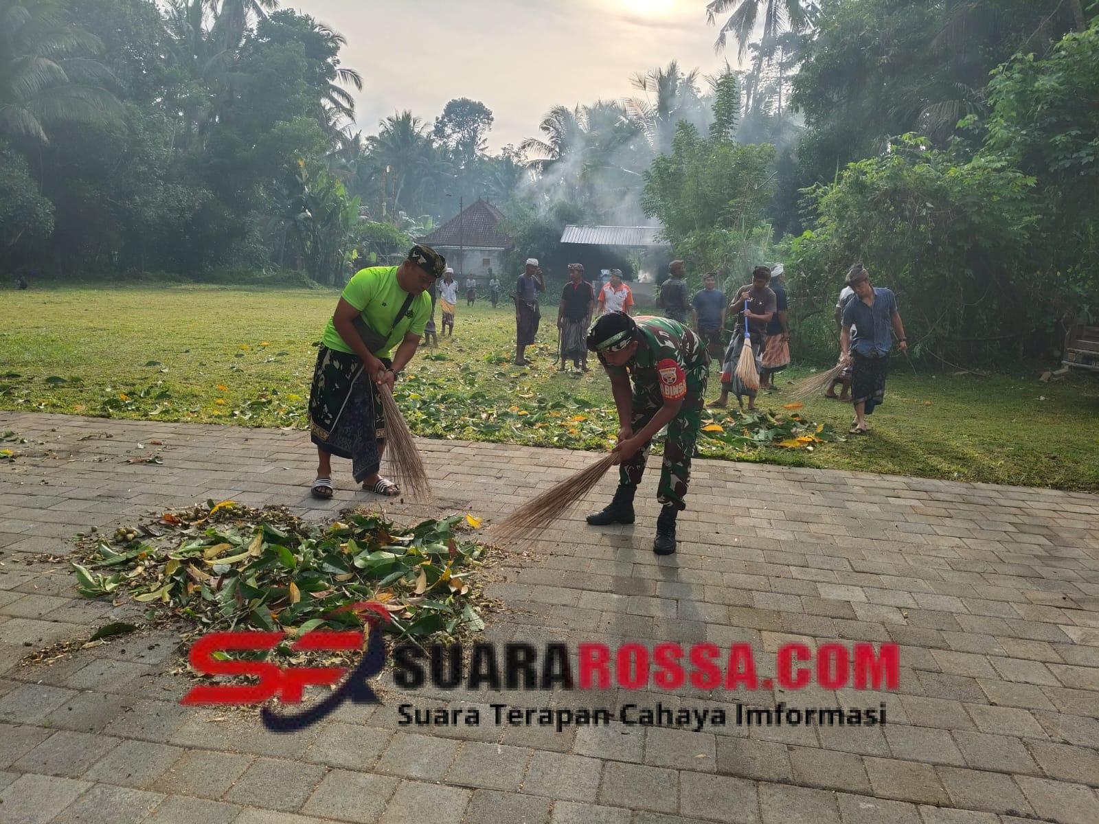 Menjelang Hari Raya Aci Keburan, Babinsa Desa Kelusa Koramil 1616-07/Payangan Serda I Wayan Martika bersama Bhabinkamtibmas Desa Kelusa Aiptu I Wayan Muriana serta masyarakat Desa Adat Kelusa melaksanakan kegiatan gotong royong bersih-bersih di areal Jaba Pura Hyang Api. Kegiatan ini digelar sebagai bentuk persiapan dan penghormatan dalam rangka menyambut Piodalan Aci Keburan yang akan berlangsung selama 35 hari, dimulai bertepatan dengan Hari Raya Kuningan di Pura Hyang Api Desa Adat Kelusa, Kecamatan Payangan, Kabupaten Gianyar.