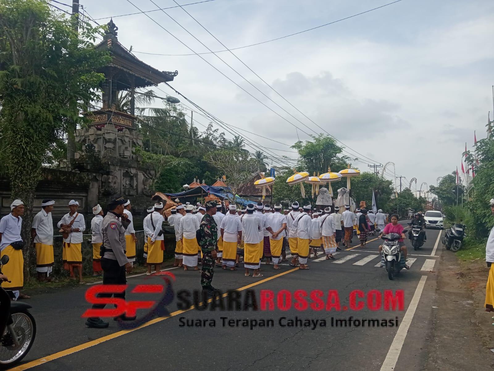 Selama kegiatan berlangsung, Babinsa bersama Bhabinkamtibmas dan Pecalang bekerja sama mengatur arus lalu lintas pada jalur yang dilalui iringan Sesuunan. Pengaturan dilakukan untuk menghindari kemacetan serta memastikan jalur tetap aman bagi para pemedek dan warga yang mengikuti prosesi. Kehadiran aparat kewilayahan juga memberikan rasa aman dan nyaman kepada masyarakat yang terlibat langsung dalam upacara adat tersebut.