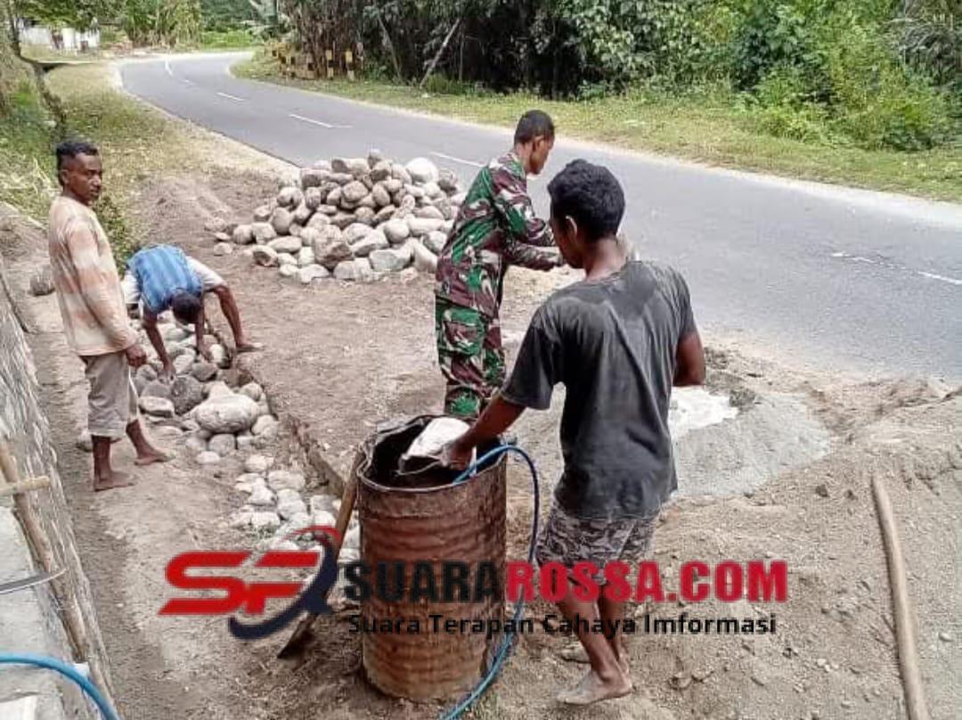 “Kegiatan ini sangat penting untuk mencegah bahaya longsor yang bisa mengancam keselamatan pengguna jalan. Kami bersama masyarakat bekerja secara bergotong royong agar pembangunan Tembok Penahan Tanah ini dapat selesai tepat waktu dan memberikan manfaat jangka panjang. Semoga inisiatif ini semakin mempererat hubungan kebersamaan antara TNI dan masyarakat,” ujar Serka Syafrudin Bhoka.
