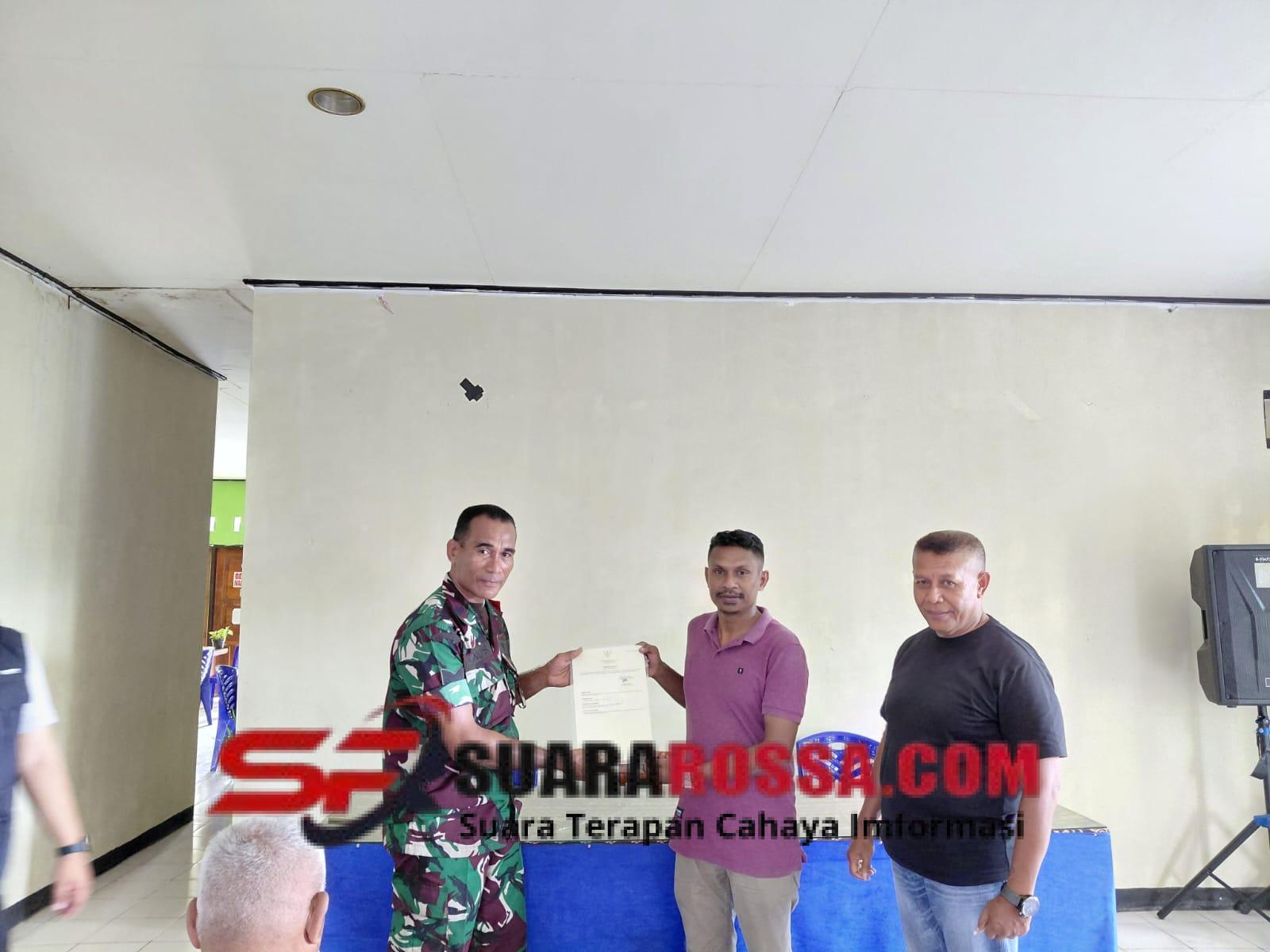 NTT-KUPANG, – Babinsa Kelurahan Pasir Panjang Koramil 1604-01/Kupang, Sertu Yunus Koro, bersama BPK Lurah dan Bhabinkamtibmas menghadiri acara penyerahan sertifikat Program Pendaftaran Tanah Sistematis Lengkap (PTSL) kepada empat warga penerima. Kegiatan yang berlangsung di Kantor Kelurahan Pasir Panjang, Kecamatan Kota Lama, Kota Kupang ini dilaksanakan oleh petugas dari BPN Kota Kupang. Sabtu (22/11/2025).