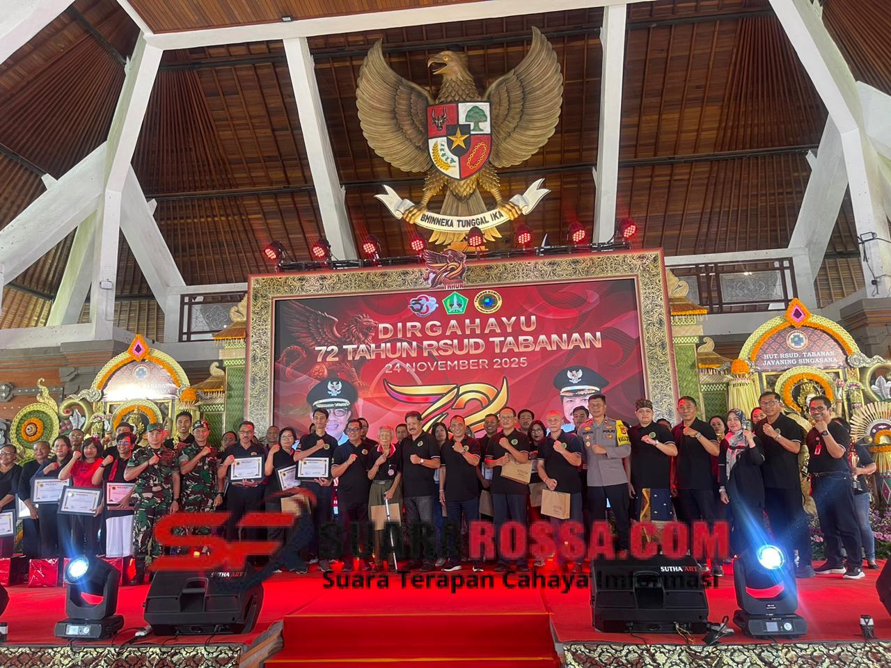 Tabanan – Komandan Kodim 1619/Tabanan Letkol Inf Trijuang Danarjati, S.A.P., M.I.P., bersama jajaran Forkopimda Tabanan menghadiri Acara Puncak Hari Ulang Tahun Ke-72 RSUD Tabanan Tahun 2025 yang mengusung tema “72 Tahun Bersama Melayani Sepenuh Hati” di Gedung Kesenian I Ketut Maria, Desa Delod Peken, Kec. Tabanan,Senin (24/11/2025).