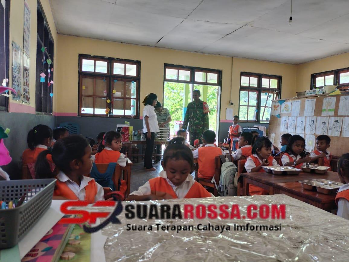 Rote Ndao – Pada hari Senin, 24 November 2025 pukul 07.00 WITA, bertempat di Yayasan Sasando Abadi, Desa Ofalangga, Kecamatan Pantai Baru, Babinsa Koramil 1627-02/Pantai Baru, Koptu Mesak Foeh, melaksanakan kegiatan pendampingan pemberian makanan sehat bergizi kepada anak-anak siswa/i mulai dari tingkat TK/PAUD, SD, SMP hingga SMA. Kegiatan ini diselenggarakan oleh pihak ketiga bekerja sama dengan BGN RI dalam rangka mendukung pemenuhan gizi bagi pelajar di wilayah Kecamatan Pantai Baru, Kabupaten Rote Ndao.