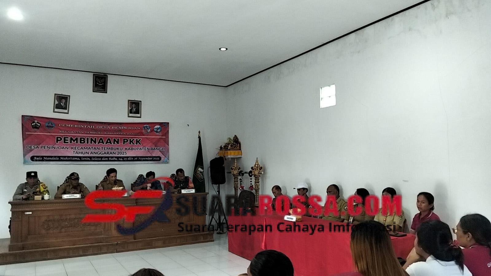 Bangli – Babinsa Desa Peninjoan Koramil 1626-03/Tembuku, Serka I Made Suarnika, menghadiri kegiatan Pembinaan PKK Desa Peninjoan Tahun Anggaran 2025 yang dilaksanakan di Aula Mandala Mahottama Kantor Perbekel Peninjoan, Senin (24/11/2025).