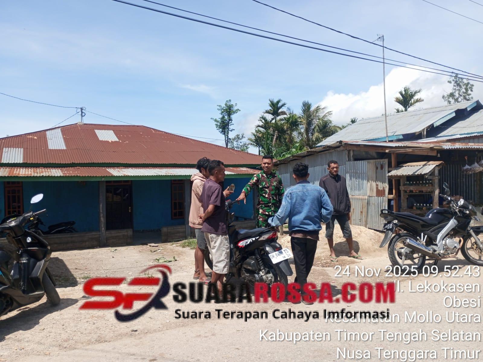 Mollo Utara – Babinsa Koramil 1621-03/Mollo Utara terus menunjukkan kepeduliannya terhadap keamanan dan kenyamanan masyarakat. Pada Senin, 24 November 2025, personel piket yang terdiri dari Sertu Silvester dan Kopda Daud Hama melaksanakan monitoring wilayah di sekitar Pasar Kapan, Kecamatan Mollo Utara.