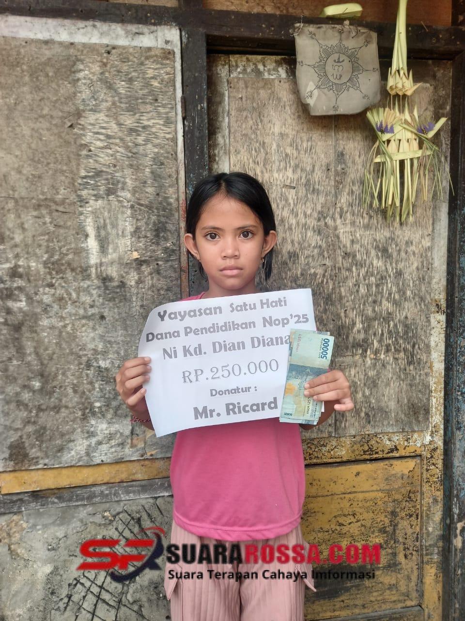 I Gede Prasetya, Kelas VIII SMP N 2 Batu Madeg dan Ni Kadek Dian Diana, Kelas V SD N 3 Klumpu ini adalah dua anak yang menjadi anak asuh Yayasan Satu Hati Bali, sehingga dalam setiap bulannya mereka akan menerima dana bantuan pendidikan.