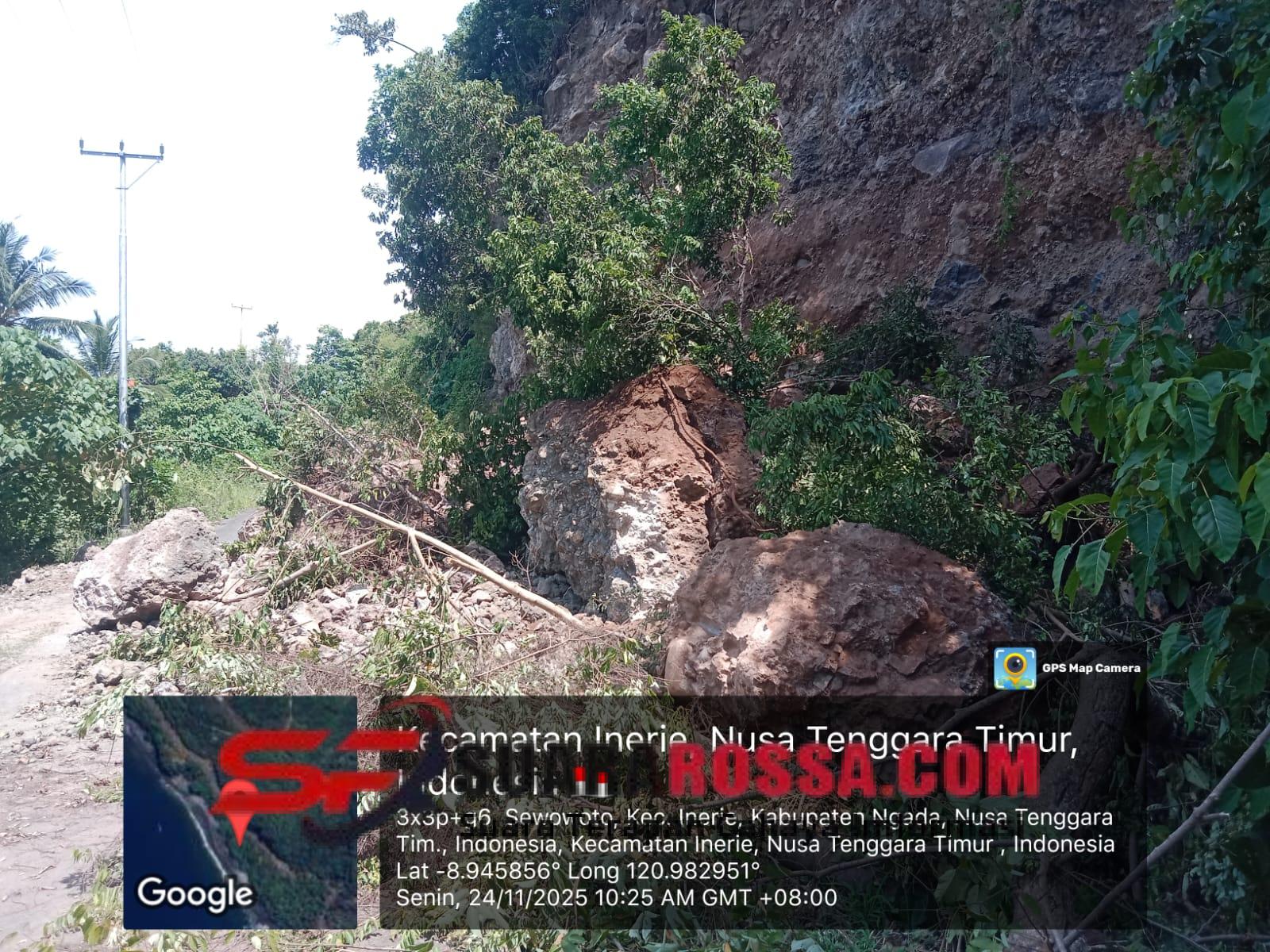 Ngada – Babinsa Koramil 1626-02/Aimere, wilayah Desa Waebela, Kecamatan Inerie, Kabupaten Ngada, melaksanakan pengecekan lokasi longsor yang terjadi di Desa Waebela. Kejadian longsor tersebut mengakibatkan tertutupnya ruas jalan penghubung Inerie – Golewa Selatan, sehingga aktivitas mobilitas masyarakat setempat terganggu.
