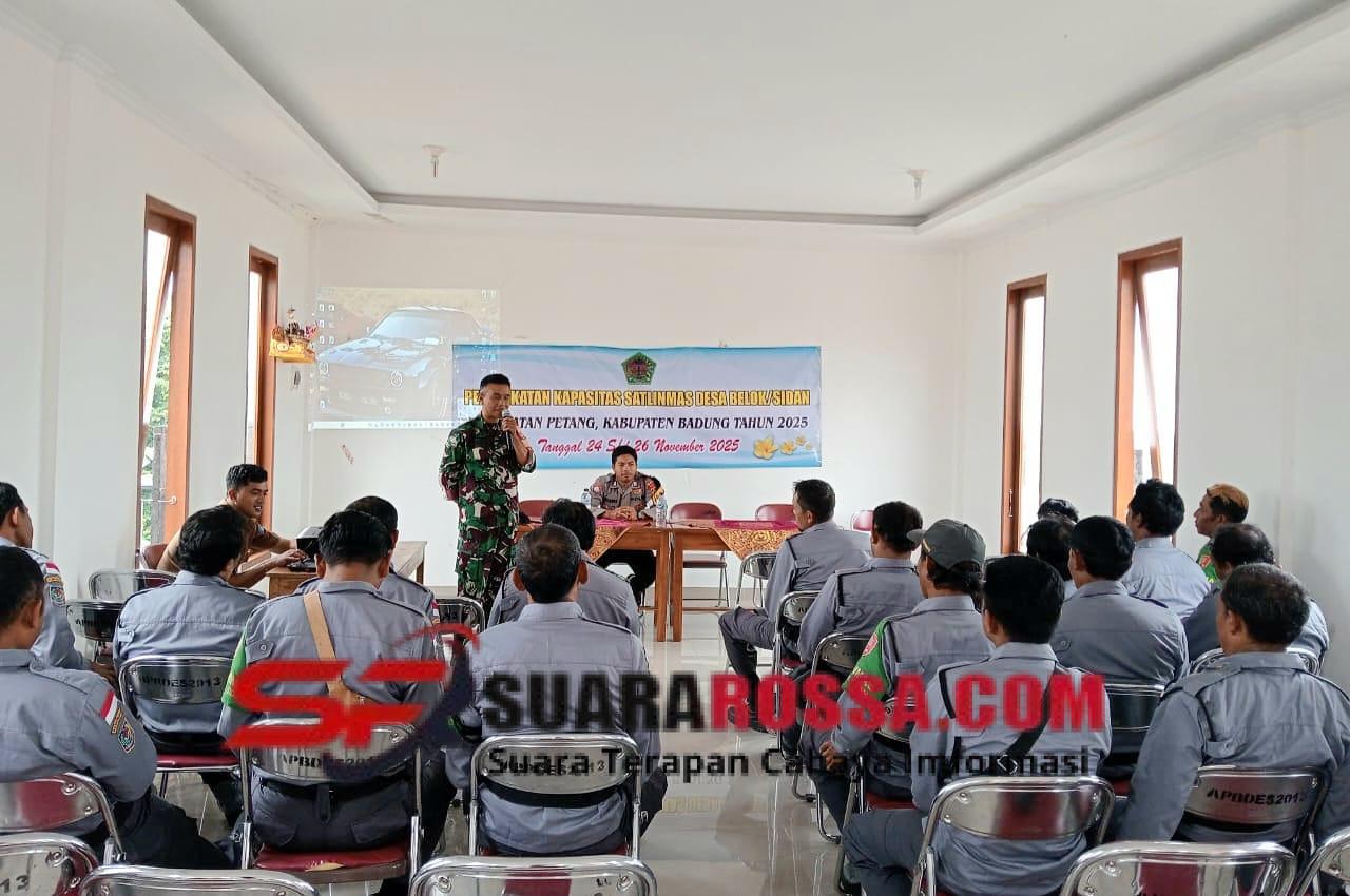 BALI – Badung, Dalam upaya meningkatkan kapasitas anggota Perlindungan Masyarakat (Linmas) di Desa Belok/Sidan, Kecamatan Petang, Kabupaten Badung, Babinsa Desa Belok/Sidan, Serka Made Astika, turut serta menjadi narasumber dalam kegiatan Bimbingan Teknis (Bintek) Linmas. Kegiatan ini dilaksanakan di Aula Kantor Desa Belok/Sidan, Kecamatan Petang, Kabupaten Badung. Selasa, (25/11/25).