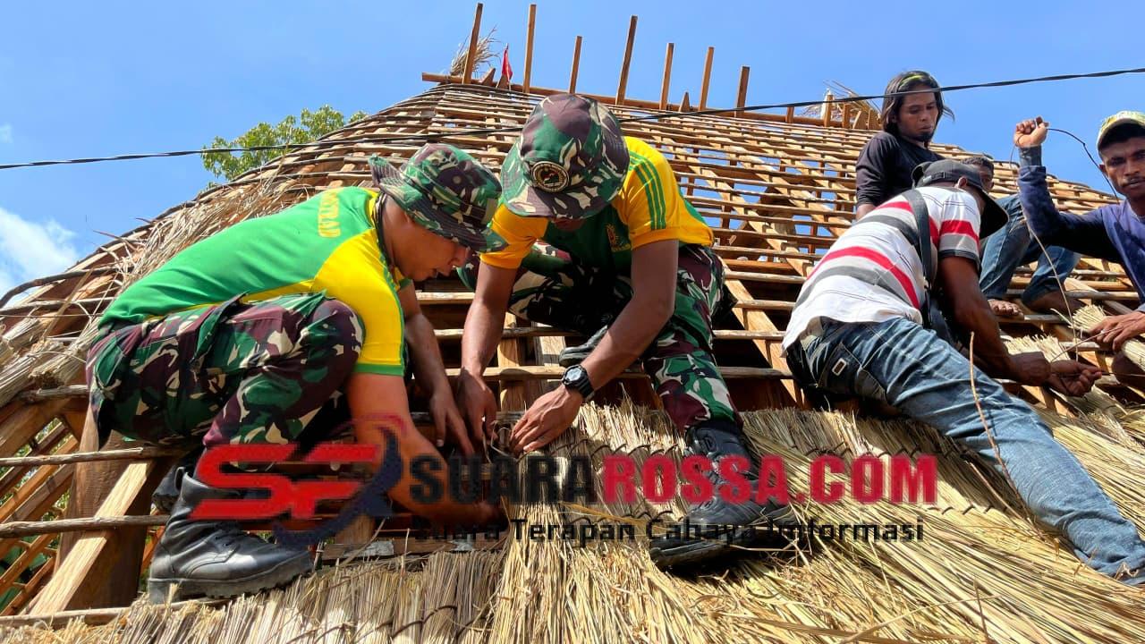 Dalam pelaksanaan kegiatan, personel Pos Lookeu bekerja bersama Ketua Suku, Bapak Marianus Ulu, serta lebih dari 45 masyarakat Desa Tulatudik. Para prajurit membantu pemasangan dan pengikatan atap alang-alang, memastikan penataan material dilakukan dengan kuat, rapi, dan tetap mengikuti kaidah adat. Kolaborasi antara Satgas dan masyarakat ini menjadi wujud gotong royong yang memperlihatkan sinergi kuat dalam menjaga warisan budaya leluhur.