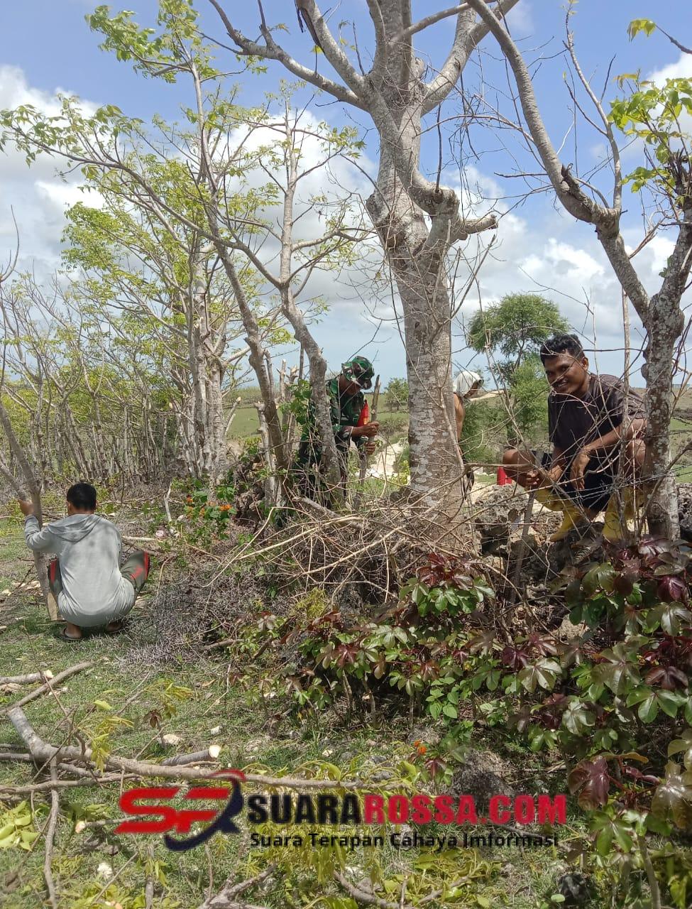Pada kegiatan tersebut, Babinsa bersama warga melakukan pembangunan dan perbaikan pagar di sekitar lahan persawahan. Salah satu warga yang terlibat, Bapak Hans Dami, turut berpartisipasi bersama kelompok petani lainnya dalam kerja bersama tersebut. Pembuatan pagar dilakukan untuk melindungi areal sawah dari gangguan hewan dan memastikan lahan siap memasuki masa tanam.