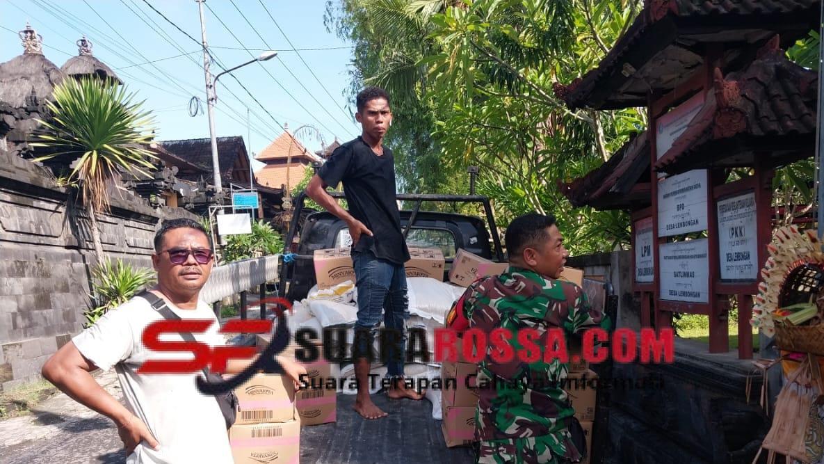 Klungkung,- Sebagai bentuk pelayanan dan kepedulian TNI akan kesejahteraan masyarakat, Babinsa Lembongan Koramil 1610-04/Nusa Penida Koptu Kuswara melaksanakan pendampingan dan pengawasan distribusi bantuan pangan beras dan minyak goreng Desa lembongan dan Jungutbatu, Rabu ( 26/11/25 ).