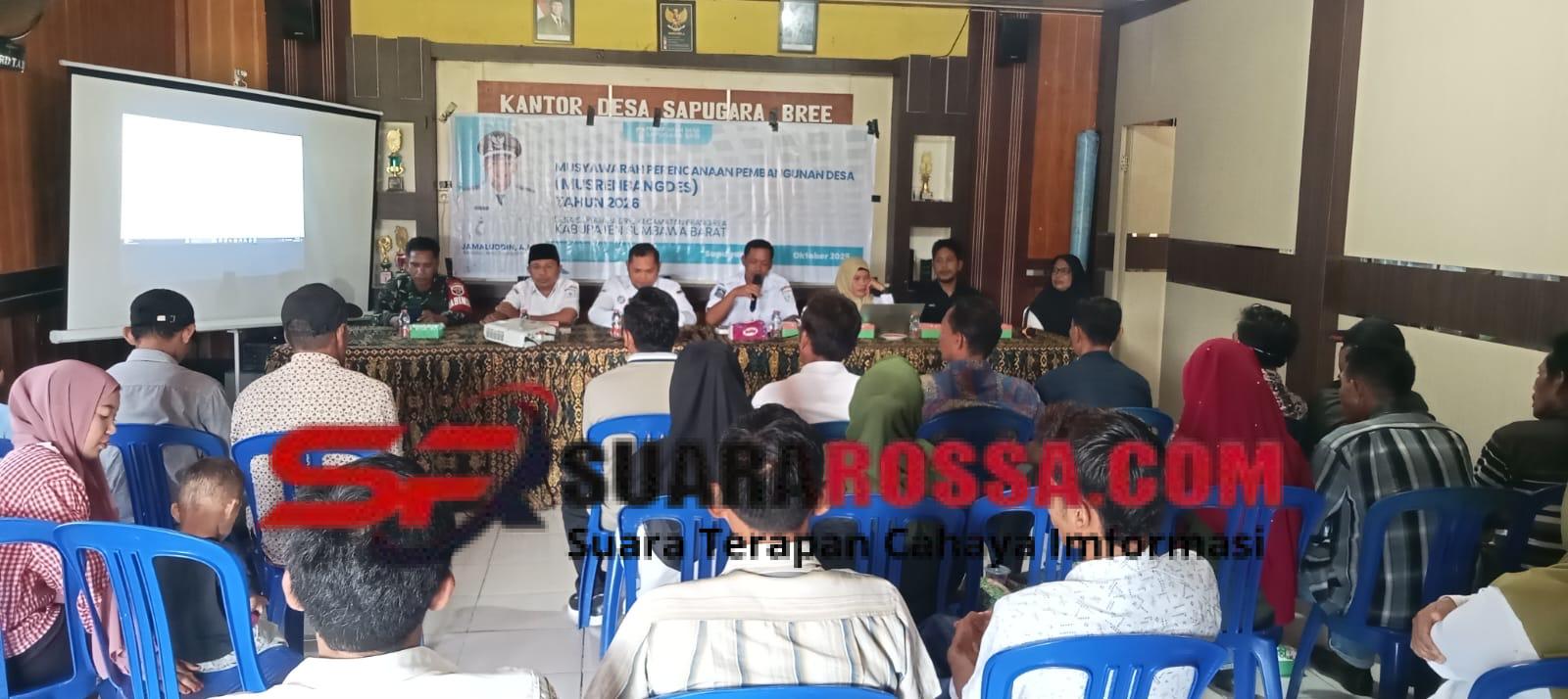 Sumbawa Barat — NTB, Pemerintah Desa Sapugara Bree menggelar Musyawarah Rencana Pembangunan Desa (Musrenbangdes) Tahun Anggaran 2026 pada Rabu, (26 November 2025). Kegiatan yang berlangsung di Aula Kantor Desa Sapugara Bree tersebut turut dihadiri Babinsa Koramil 1628-01/Taliwang, Sertu Syarifudin, sebagai bentuk dukungan TNI dalam mendampingi pembangunan di tingkat desa.