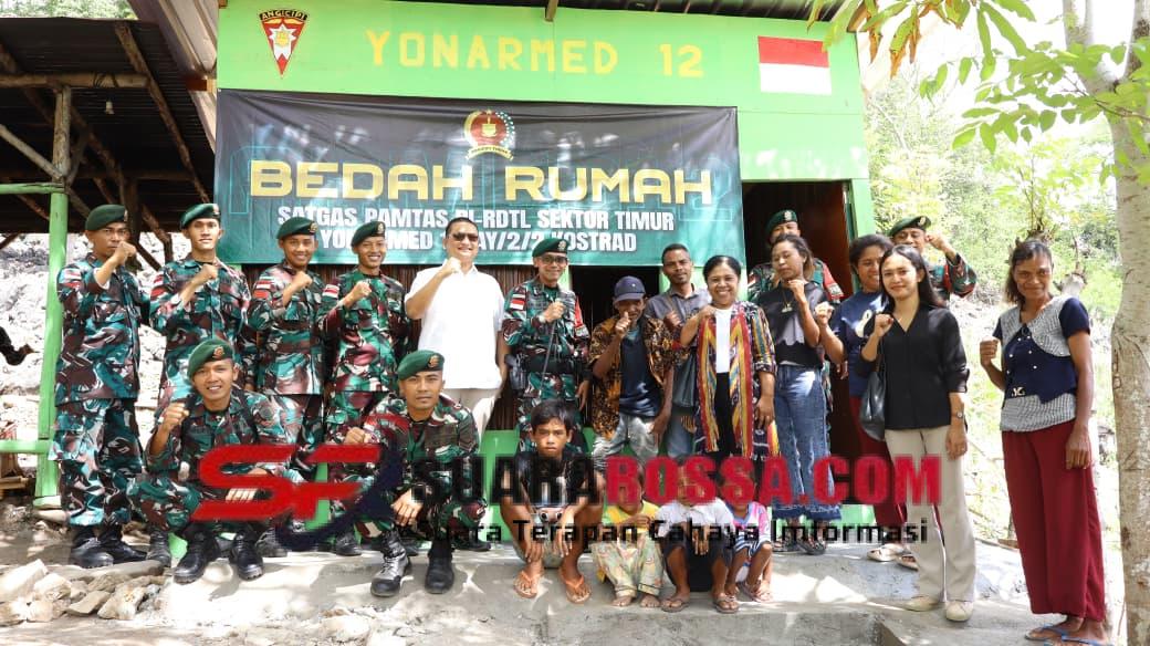 Belu,- Satgas Pengamanan Perbatasan (Pamtas) RI–RDTL Sektor Timur Yonarmed 12 Kostrad kembali menunjukkan komitmennya dalam membantu masyarakat perbatasan, 25/11/2025. Kali ini, personel satgas melaksanakan kegiatan bedah rumah bagi salah satu warga di Desa Manuaman, Kecamatan Atambua, Kabupaten Belu, NTT. Program ini menjadi bagian dari upaya pembinaan teritorial untuk meningkatkan kesejahteraan masyarakat yang tinggal di wilayah perbatasan.