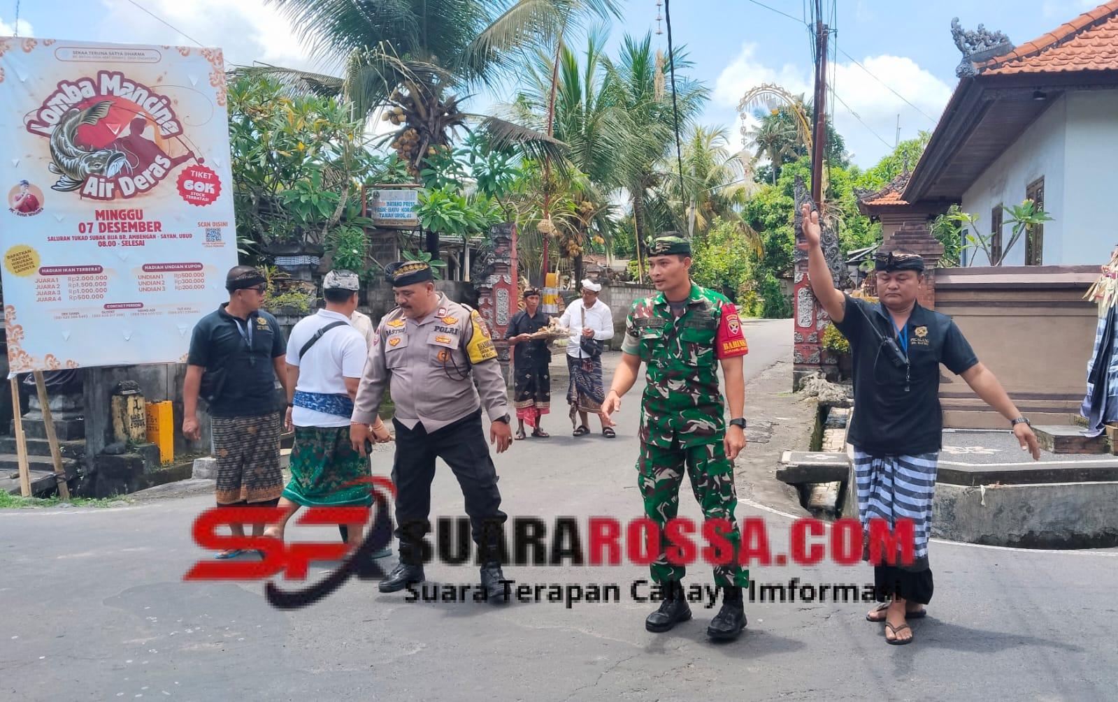 Dalam pelaksanaan kegiatan adat tersebut, Babinsa bersama Bhabinkamtibmas dan Pecalang melaksanakan pengamanan jalur serta mengatur arus lalu lintas untuk memastikan prosesi berjalan tertib dan aman. Mengingat iring-iringan warga cukup panjang dan melewati akses jalan umum, pengawalan dilakukan dengan cermat guna menghindari kemacetan serta memberikan rasa aman bagi keluarga dan umat yang mengikuti upacara.