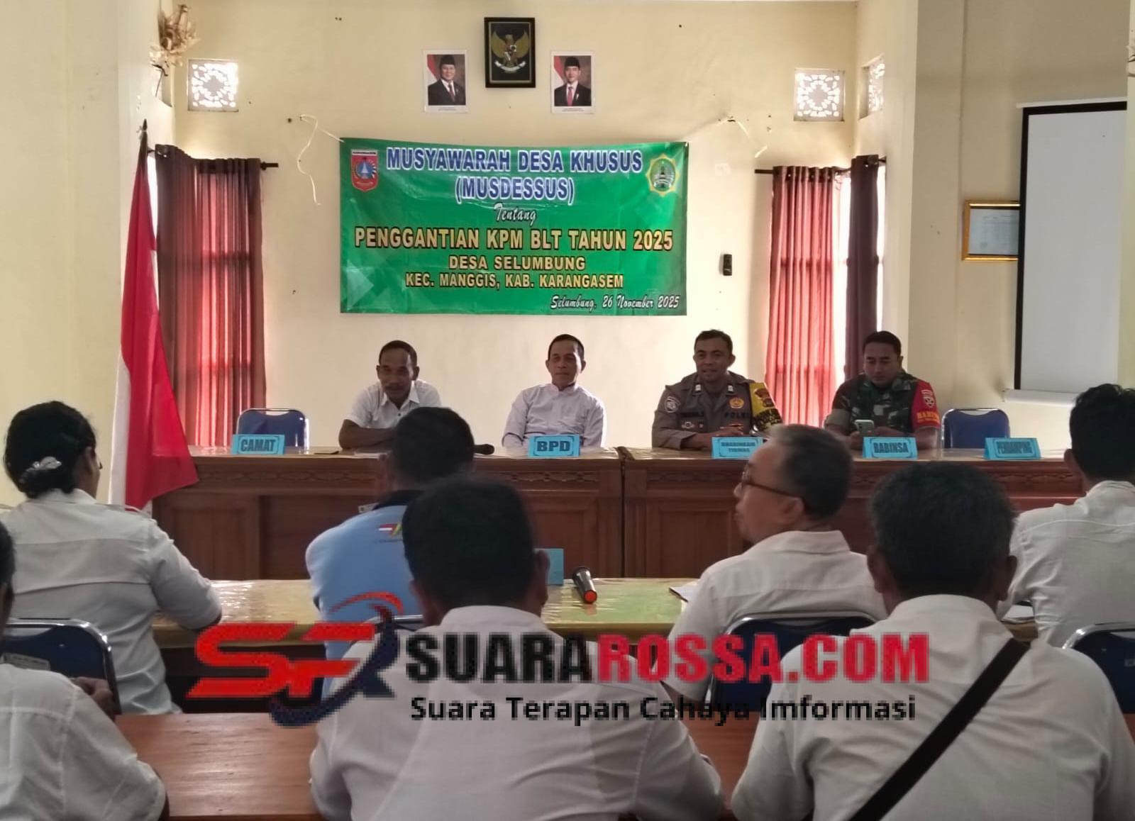 Karangasem – Babinsa Desa Selumbung Koramil 1623-05/Manggis Koptu Mohamad Rofi’i menghadiri Musyawarah Desa Khusus (Musdessus) membahas tentang penetapan Keluarga Penerima Manfaat (KPM) Bantuan Langsung Tunai (BLT) Tahun Anggaran 2025. Kegiatan ini berlangsung di Aula Kantor Desa Selumbung, Kec.Manggis, Kab.Karangasem, pada Rabu (26/11/25).