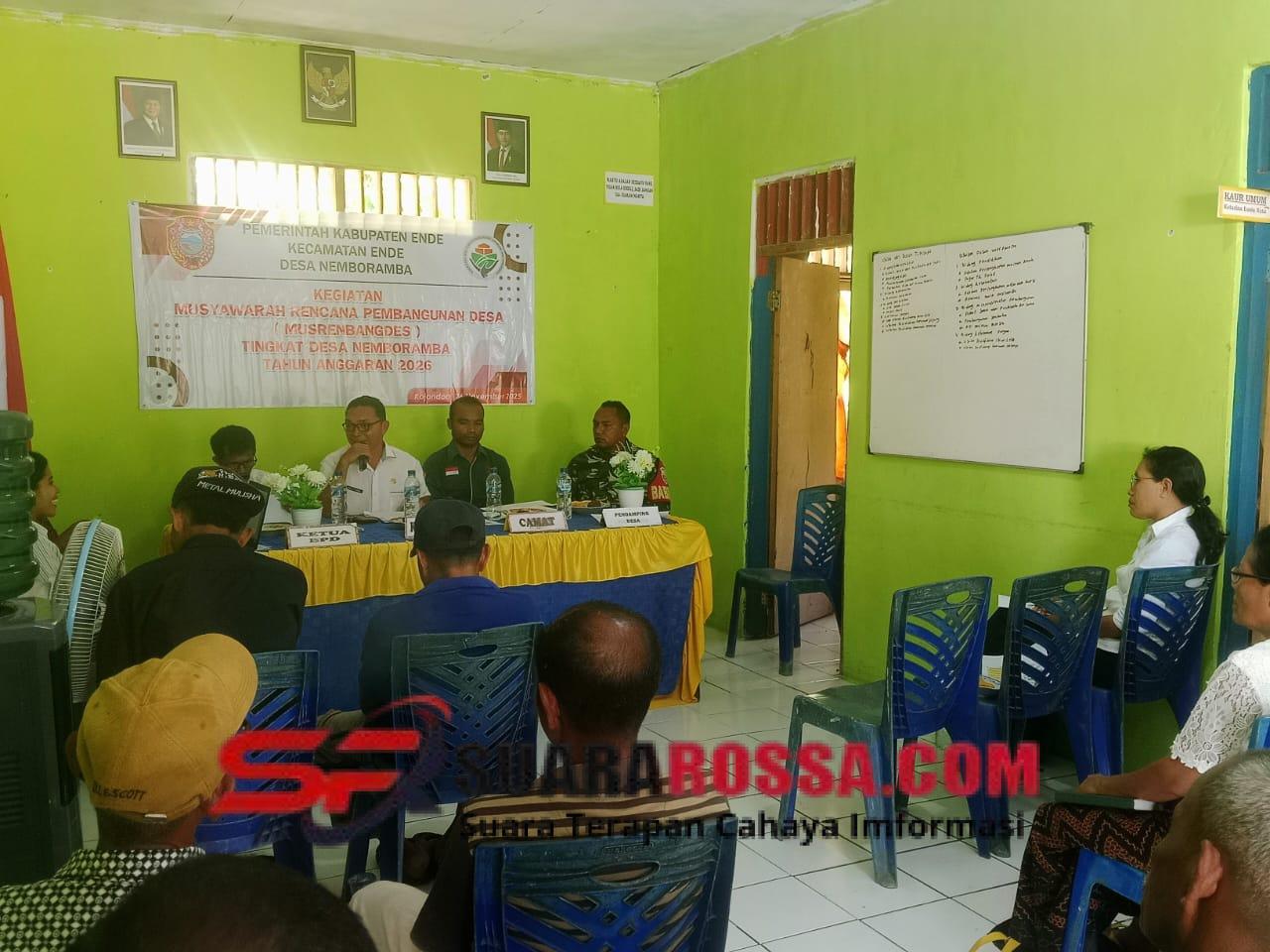 MusrenbangDes dimulai dengan pembukaan oleh MC, dilanjutkan menyanyikan Lagu Indonesia Raya. Setelah laporan panitia, kegiatan dilanjutkan dengan sambutan-sambutan dari Kepala Desa Nemboramba, Camat Ende, dan Ketua BPD yang masing-masing menekankan pentingnya perencanaan pembangunan yang tepat sasaran, transparan, dan sesuai kebutuhan masyarakat.