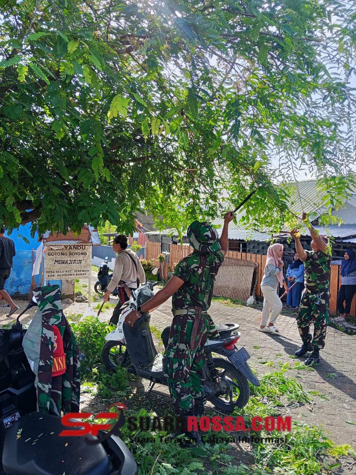 Sumbawa Barat – NTB, Kapten CBA Suwondo, Danramil 05/Jereweh, bersama Babinsa Desa Belo dan Forkompincam, memimpin kegiatan gotong royong dalam rangka menyiapkan Posyandu Muhajirin untuk mewakili Kecamatan Jereweh pada lomba Posyandu tingkat provinsi, Kamis (27/11/2025).