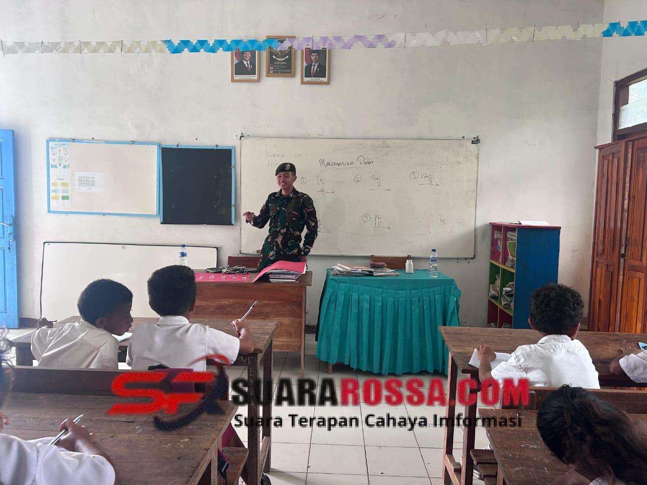 Satgas Pamtas RI–RDTL Sektor Timur Pos Haslot kembali menunjukkan kontribusinya di dunia pendidikan melalui kegiatan Pembelajaran Umum (Gadik) di SD Lalebun, Desa Alas Selatan, Kecamatan Kobalima Timur, Kabupaten Malaka, NTT. Dalam kegiatan ini, personel Pos Haslot memberikan materi pembelajaran matematika kepada para siswa sebagai bentuk dukungan terhadap peningkatan kualitas belajar di wilayah perbatasan.