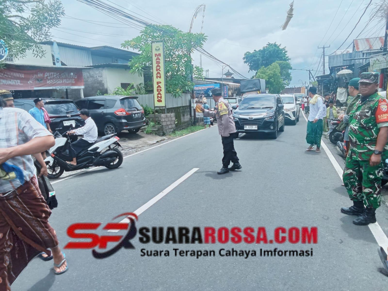 Sebagai bentuk dukungan terhadap kelancaran ibadah dan menjaga kenyamanan masyarakat, Babinsa bersama Bhabinkamtibmas dan Banser mengatur arus lalu lintas di jalur Gentong–Tegallalang yang rawan padat, sekaligus membantu penyeberangan jemaah yang datang.