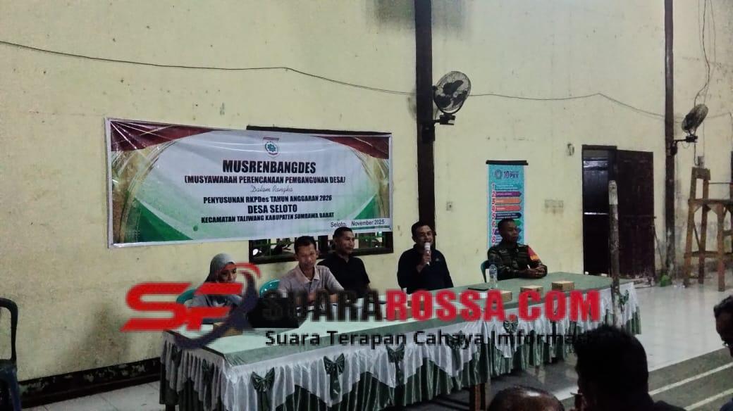 Sumbawa Barat — NTB, Anggota Koramil 1628-01/Taliwang, Babinsa Desa Seloto Sertu Wildansyah, menghadiri Rapat Musyawarah Perencanaan Pembangunan Desa (Musrenbangdes) yang digelar di Aula Kantor Desa Seloto, Kecamatan Taliwang, pada Kamis malam (27/11/2025) pukul 20.30 WITA.