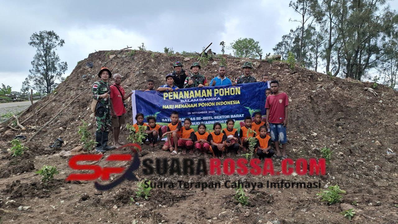 NTT — Satgas Pamtas RI -RDTL Sektor Barat Yonarhanud 2 Kostrad menggelar aksi penghijauan di garis batas dengan melaksanakan Penanaman Pohon Serentak di seluruh pos yang berada di sepanjang perbatasan dalam rangka memperingati Hari Menanam Pohon Indonesia (HMPI). Jumat (28/11)