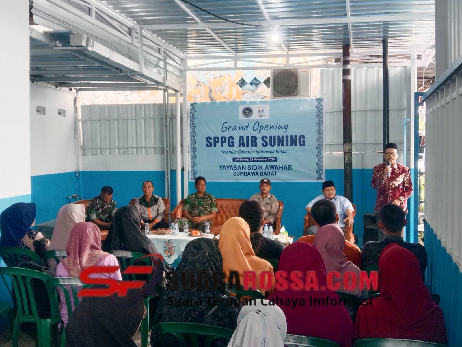 Sumbawa Barat – NTB, Upaya peningkatan pelayanan pemenuhan gizi masyarakat kembali diperkuat dengan diresmikannya Dapur Satuan Pelayanan Pemenuhan Gizi (SPPG) Yayasan yang berlokasi di RT 02 Dusun Air Suning, Kecamatan Seteluk, Sabtu (29/11/2025). Kegiatan peresmian yang dimulai pukul 09.00 WITA tersebut dihadiri berbagai unsur pemerintah daerah, TNI, Polri, tokoh masyarakat, serta stakeholder terkait.