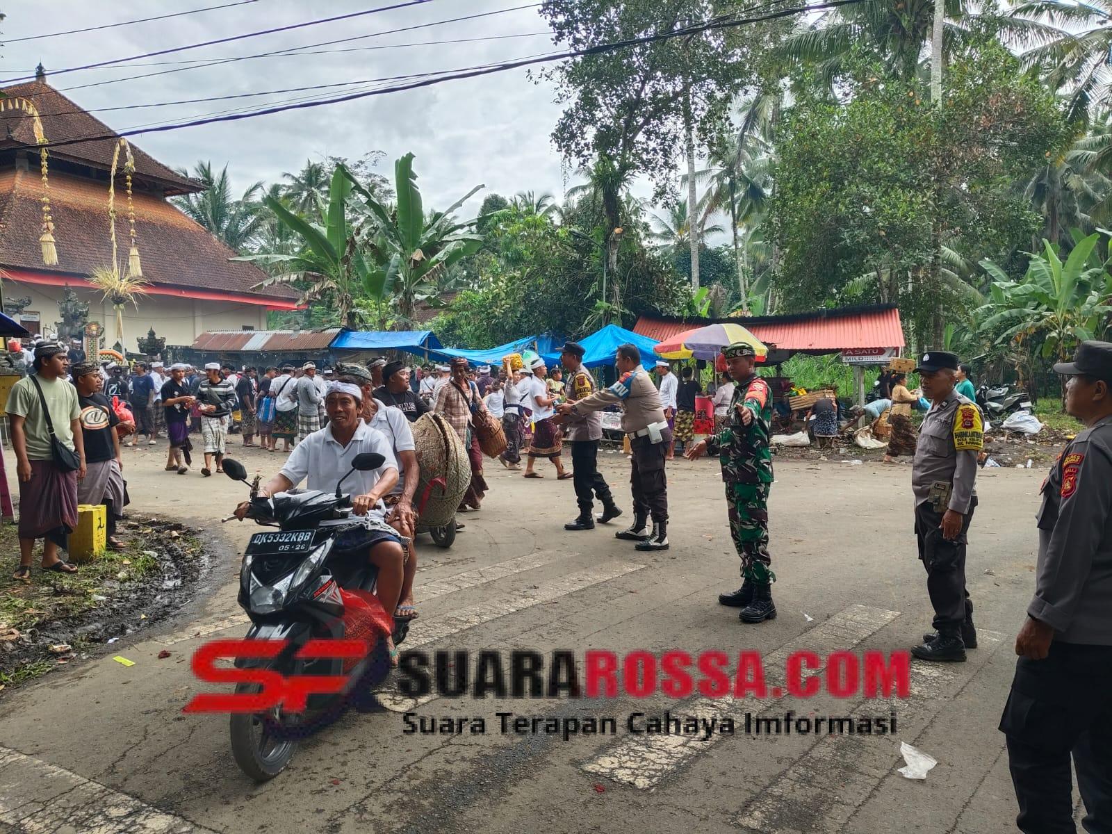 Ratusan warga terlihat hadir untuk melaksanakan persembahyangan sekaligus mengikuti tradisi Aci Keburan. Kehadiran warga tidak hanya dari Desa Kelusa, namun juga dari luar desa sehingga menimbulkan peningkatan aktivitas di sekitar pura. Menyikapi hal tersebut, Babinsa bersama unsur pengamanan lainnya melaksanakan penjagaan melekat, mengatur arus lalu lintas, dan memastikan mobilitas warga tetap berjalan lancar dan aman.