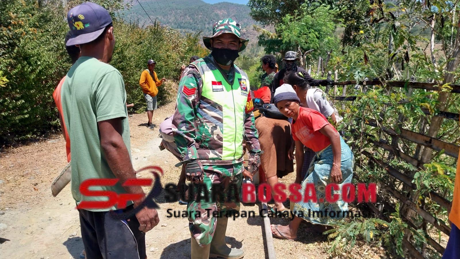 Dalam kegiatan gotong royong yang melibatkan warga setempat tersebut, Kopka Miguel Almeida Bire menegaskan pentingnya kebersamaan dan kerja kolektif dalam mengatasi persoalan sehari-hari di desa.
