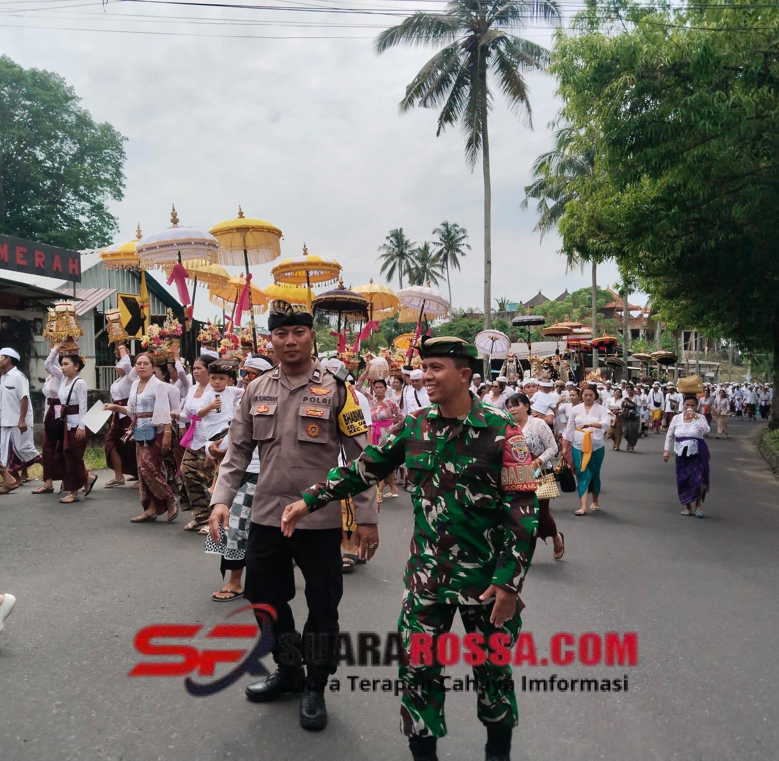 Gianyar – Samplangan, Minggu (30/11/2025) Ratusan warga mengikuti kegiatan tradisi adat Ngelungaang, Babinsa Kelurahan Samplangan Koramil 1616-01/Gianyar Serka I Komang Yudiartana bersama Bhabinkamtibmas Samplangan berkolaborasi dengan Pecalang Desa Adat Bukit Batu melaksanakan pengamanan serta pengaturan arus lalu lintas dalam rangka Ngiring Sesuhunan Pura Pucak Bukit Langkian dan Pura Dalem Desa Adat Bukit Batu menuju Pura Pucak Bukit Sari, Desa Adat Sidan, Gianyar.