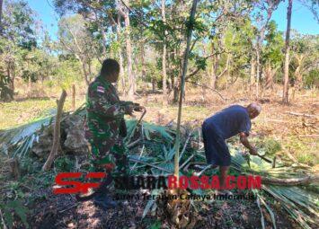 KODIM 1605/BELU, Babinsa Desa Boen Koramil 1605-09/Biudukfoho Sertu Marten Orisia Bria Asa membantu warga binaannya membuka lahan untuk dijadikan perkebunan dalam upaya membangun perekonomian masyarak...