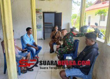 SUMBA BARAT – Sertu Arifudin, anggota Koramil 02/Walakaka Kodim 1613/Sumba Barat, melaksanakan kegiatan komunikasi sosial (Komsos) bersama aparat Desa Patiala Dete, Kecamatan Laboya Barat, Kabup...