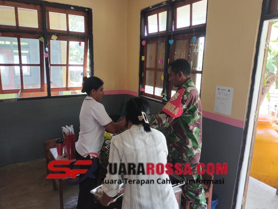 Pelaksanaan kegiatan diawali dengan pendampingan Babinsa yang memastikan proses distribusi berjalan tertib dan aman. Koptu Mesak Foeh hadir langsung untuk memantau jalannya kegiatan sekaligus membantu memastikan seluruh siswa menerima makanan sesuai data yang telah ditetapkan. Kehadirannya juga menjadi bagian dari tugas Babinsa dalam memberikan rasa aman kepada masyarakat khususnya anak-anak yang terlibat dalam program tersebut.