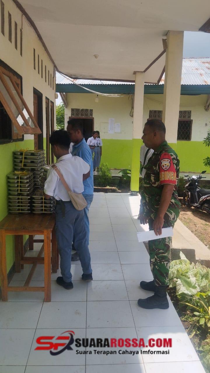 Rote Timur, 1 Desember 2025 — Babinsa Koramil 1627-02/Pantai Baru, Serda Ismail Rahadat, melaksanakan kegiatan pendampingan dan monitoring pemberian makanan sehat bergizi kepada ribuan siswa di wilayah Kecamatan Rote Timur. Kegiatan berlangsung pada Senin pagi pukul 07.00 WITA di Yayasan Terdinda Berkat Lancar, Desa Papela.